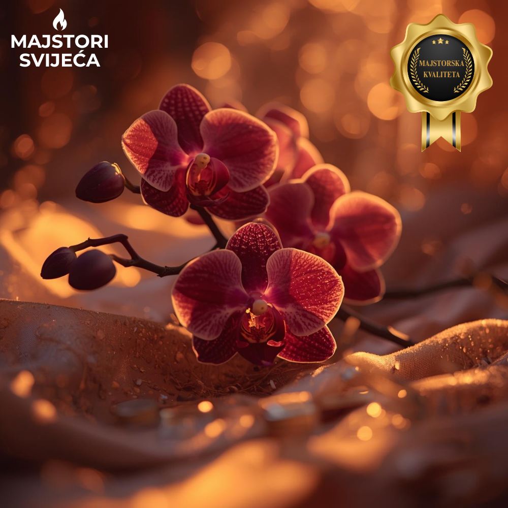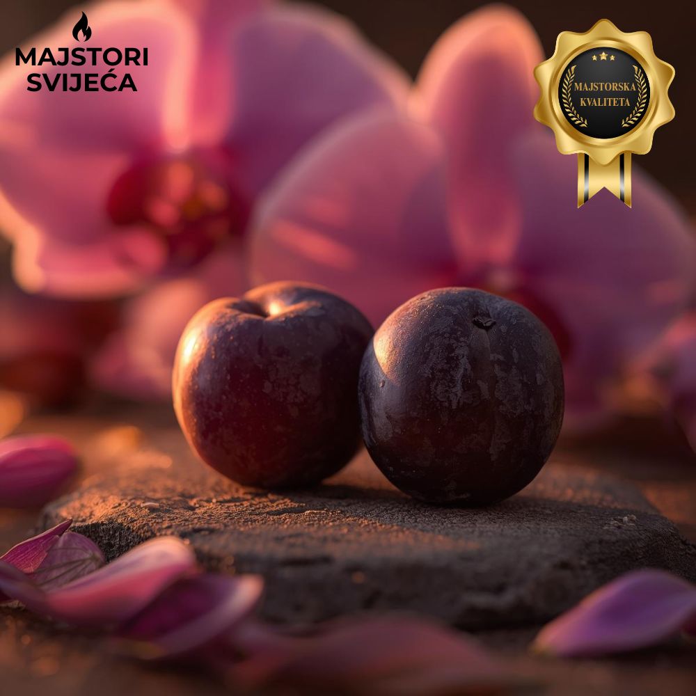 To je osjećaj toplog sumraka, kada se prostor utiša, svjetlo omekša, a atmosfera postaje intimna i smirena. Voćna punoća šljive i suptilna elegancija orhideje stvaraju baršunastu sredinu, dok jantar, vanilija i mošus ostavljaju mekan, topao trag koji se u prostoru zadržava dugo nakon što se plamen ugasi.